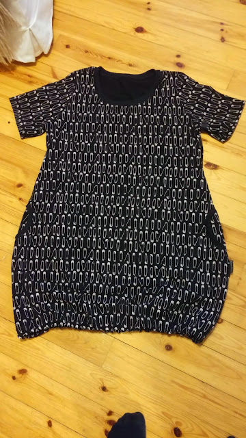 Mutta tänään siis valmistui pussihelmainen mekko.